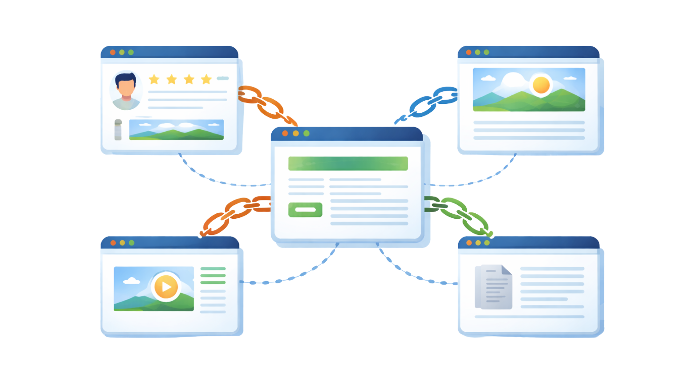 Search engines use links as "votes" for your content's quality and authority. Links help search engines discover your indexed pages faster. Quality backlinks from reputable websites signal trustworthiness. Links drive referral traffic (which search engines also track). They help establish your site's domain authority over time.